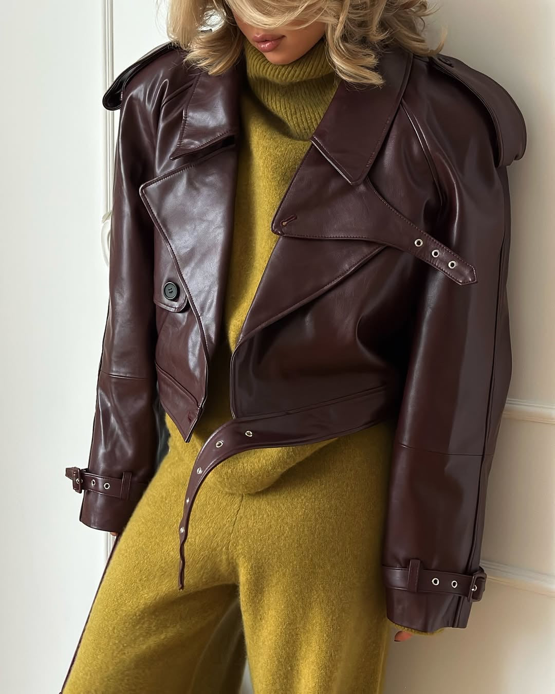 Rich Burgundy Cropped PU Leather Moto Jacket
